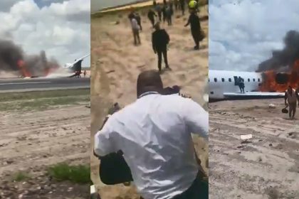 Avião com ministro sai da pista e pega fogo no Congo Um…