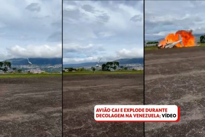 Avião cai e explode durante decolagem de aeroporto na Venezuela; vídeo Um…
