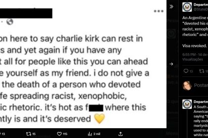 Departamento de Estado dos EUA afirma que estrangeiros que comemoraram assassinato do…