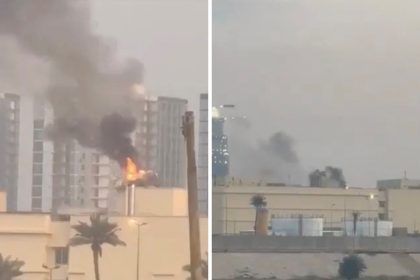 Coluna de fumaça cobre o horizonte da cidade após relatos de ataques…