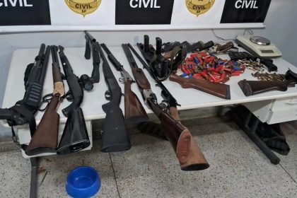 Prisão em Suzano: Pai e filho são detidos por violência doméstica e arsenal com 16 armas