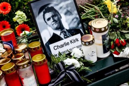 Homenagens a Charlie Kirk durante vigília realizada na Alemanha EPA via BBC…
