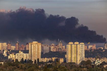 Fumaça sobe sobre Kiev após um ataque russo com mísseis, em meio…