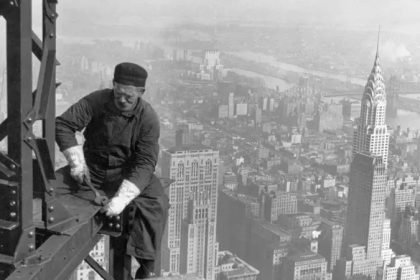 Foto de 1930 mostra operário fazendo a estrutura metálica do Empire State.…