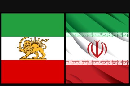 À esquerda, bandeira do Irã antes da revolução de 1979, com sinais…