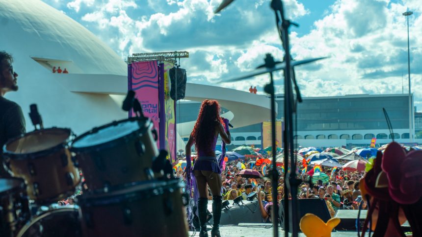 A relevância do evento também foi reconhecida pelo deputado distrital Max Maciel, conhecido por apoiar as causas LGBTQIAPN+, que festejava junto aos foliões: