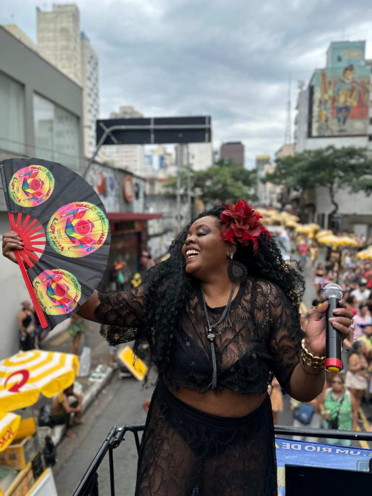 Na dispersão, a comunidade LGBTQIAPN+ celebrou ao som de Lady Gaga, com leques batendo e energia vibrante tomando conta da rua. O cortejo foi encerrado com “Zé do Caroço”, da cantora Leci Brandão, reafirmando o compromisso do bloco com consciência social e valorização da cultura popular.