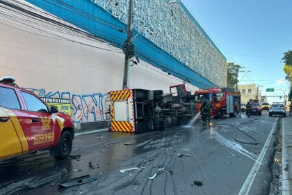Três bombeiros ficam presos às ferragens após viatura tombar em Maceió