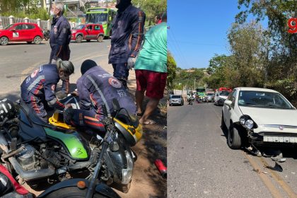 Duas pessoas ficam gravemente feridas em acidente com carro e motos na Zona Sudeste de Teresina
