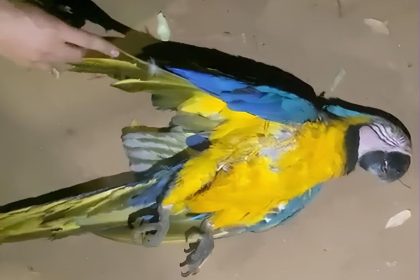 Arara-canindé morre ao bater em poste de energia e mais de 300 moradores ficam sem luz em MT