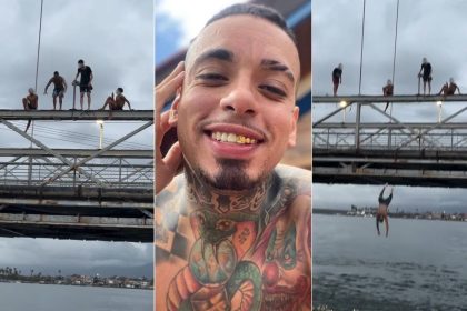 MC Kauan faz sinal da cruz e viraliza ao pular da primeira ponte suspensa do Brasil; VÍDEO