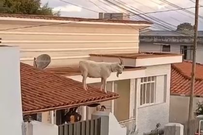 Bode sobe em telhado de casa e é resgatado pelos bombeiros em…