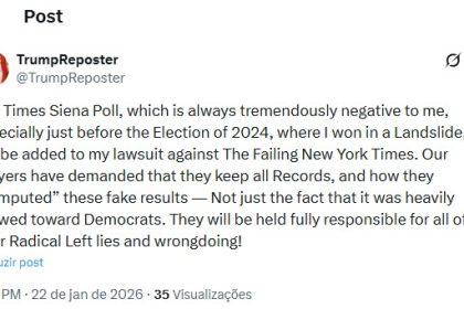 Trump questiona pesquisas de voto e de análise de governo realizadas pelo New York Times: ‘precisam explicar os resultados’