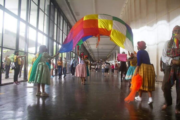 Intervenção artística das Cholitas da Babilônia na Bienal de São Paulo 2021