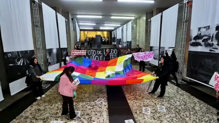 Cristina chegou à intervenção da segunda exposição de Oficina do Suor quando as coisas já estavam tensas. O público da mostra fotográfica vaiava o protesto das Cholitas da Babilônia, argumentando que elas “não entendiam de arte”, e a Guarda Civil Metropolitana usava violência para retirar as manifestantes.
