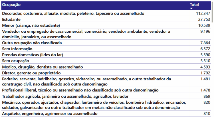 “Decorador, costureiro, alfaiate, modista, peleteiro, tapeceiro ou assemelhado”: pouco mais da metade dos registros bolivianos no Sismigra (2000–2025) se enquadram nessa categoria de ofício.