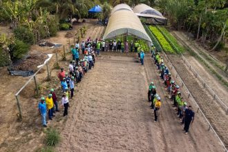 O dia começou com uma caminhada matinal pela floresta, em silêncio e conexão com a terra. Para muitas pessoas defensoras presentes, caminhar em comunidade por um território vivo é um ato político e espiritual. Nesse gesto cotidiano, plantou-se a intenção do dia: fortalecer vínculos, fazer memória do território e abrir espaço para novas formas de cura e aliança.