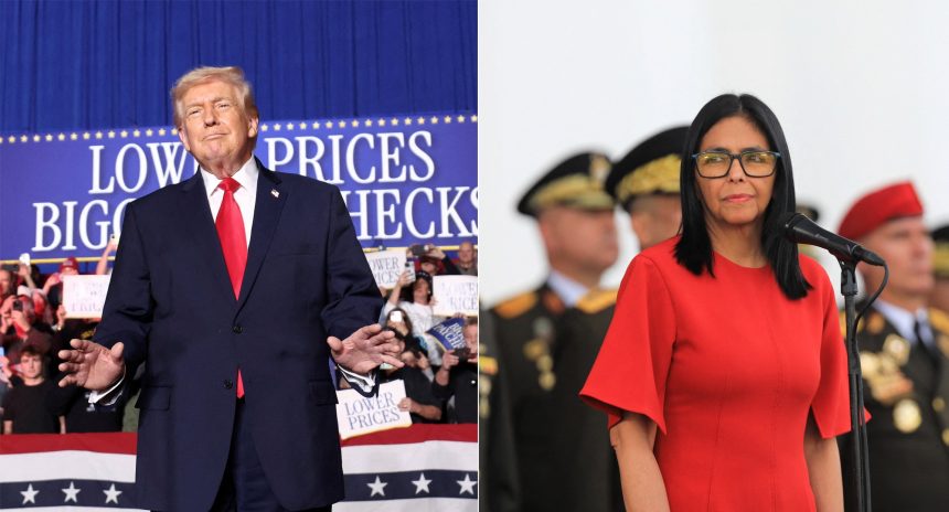 O presidente dos Estados Unidos, Donald Trump, e a presidente interina da Venezuela, Delcy Rodríguez