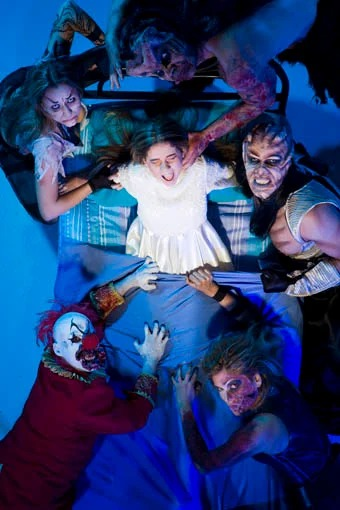 História centrada em um Mestre perverso que comandava jogos cruéis. Três casas do terror e forte interação com o público.