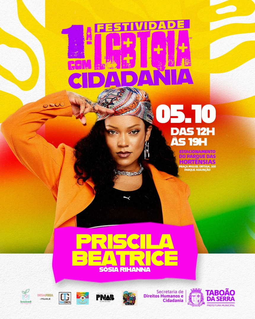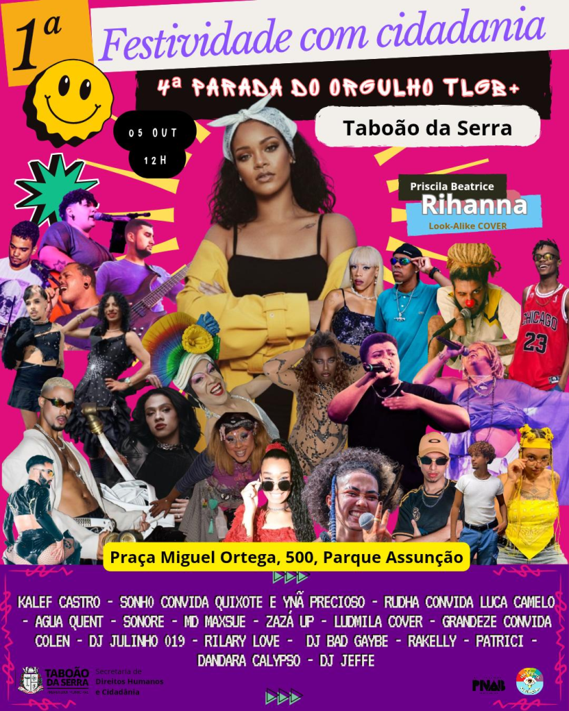 No próximo 5 de outubro de 2025, Taboão da Serra promove a 1ª Festividade LGBTQIA+ com Cidadania, um evento histórico que celebra a diversidade, os direitos humanos e a inclusão social no município. A realização é da Prefeitura de Taboão da Serra, por meio da Secretaria de Direitos Humanos e Cidadania, com apoio da Secretaria de Cultura e parceiros.