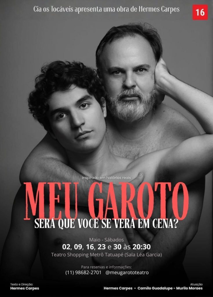 SÃO PAULO – O palco do Teatro Shopping Metrô Tatuapé recebe, a partir do dia 2 de maio, a estreia do espetáculo “Meu Garoto”, obra que mergulha nas complexidades de um romance marcado por diferenças geracionais. Escrita e dirigida por Hermes Carpes, a montagem acompanha a história de Bruno, um homem mais experiente que tem sua rotina transformada ao se envolver com o jovem Matheus.
