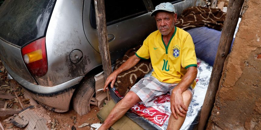 Na comunidade Três Moinhos, em Juiz de Fora, o morador Gilvan Leal Luzia, de 55 anos, passa dia e noite em um colchão posicionado no que restou da garagem. De um lado, a casa destruída pela lama. Do outro, parte do carro soterrada. Para se abrigar da chuva, um teto improvisado com colchonete, pedaços de telha e outros destroços.