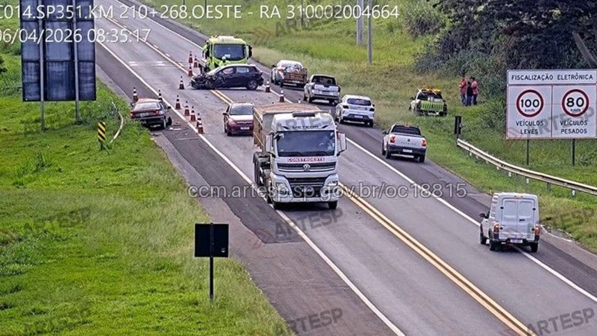 Colisão entre veículos, no km 209 da rodovia Comendador Pedro Monteleone (SP-351), em Catanduva (SP), na manhã desta segunda (6)