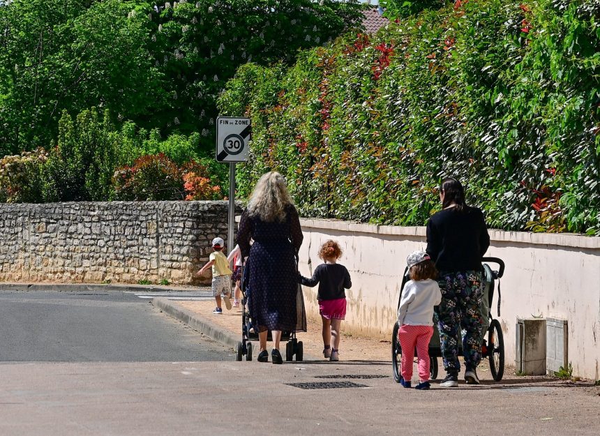 Crianças andam na cidade de Lucenay, na França